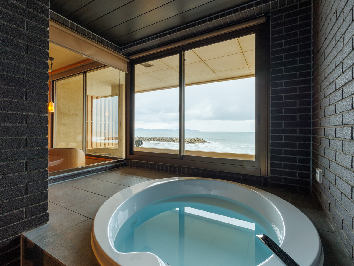 鳥取県の海を一望できるオーシャンビューのお部屋が魅力。